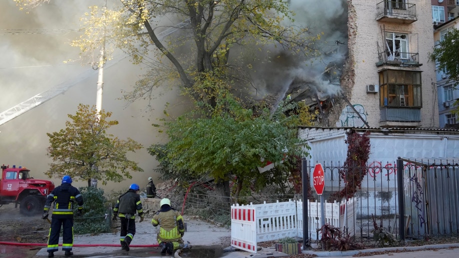 Ten residential buildings were burnt after the Russian military attacked the Ukrainian capital with drones and ballistic missiles in the early hours of Friday, authorities said.