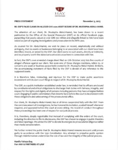 It further stated, “It is therefore false, misleading, and injurious for the OSP to make public assertions inconsistent with its own court filings in respect of Dr. Mustapha Abdul-Hamid.”