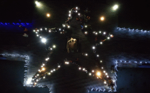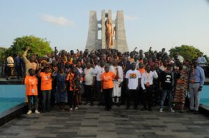 Following the solemn opening, conference delegates conducted the “BLACK STAR” PERFORMANCE in commemoration of the 80th Anniversary of the Fifth Pan-African Congress of 1945. They lined up around the monument of Kwame Nkrumah in the shape of a star and lit lights above their heads. This action paid tribute to the great Pan-Africanist and affirmed a commitment to his ideas for creating a strong, united and independent Africa.