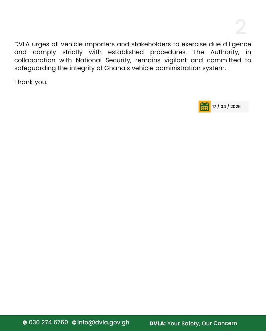 The DVLA assured the public that it is working with National Security to investigate the matter and intensify efforts to combat fraudulent practices within the vehicle importation and registration process.