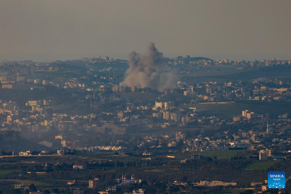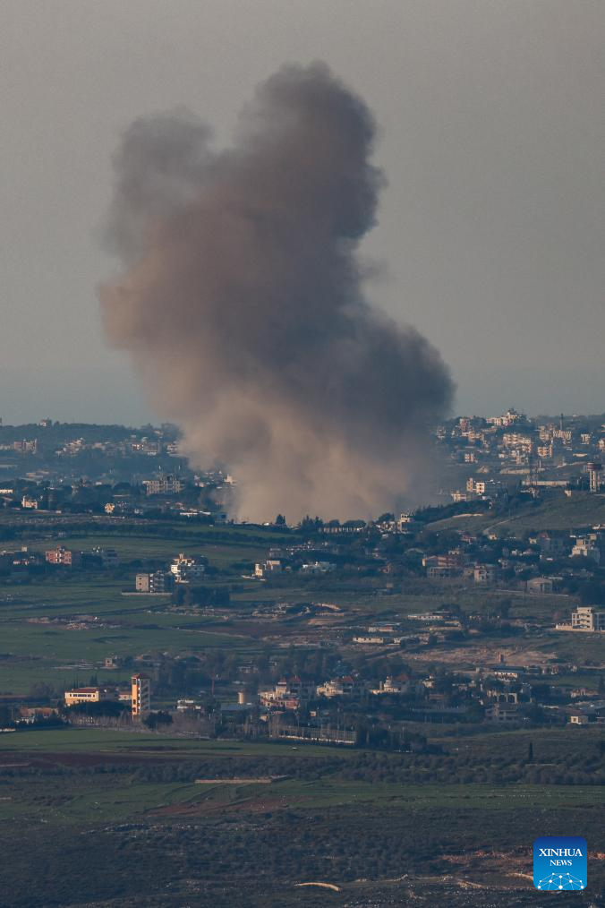 Smoke rises from an explosion following Israeli bombardment on southern Lebanon, as seen from northern Israeli border, March 2, 2026. (JINI via Xinhua)