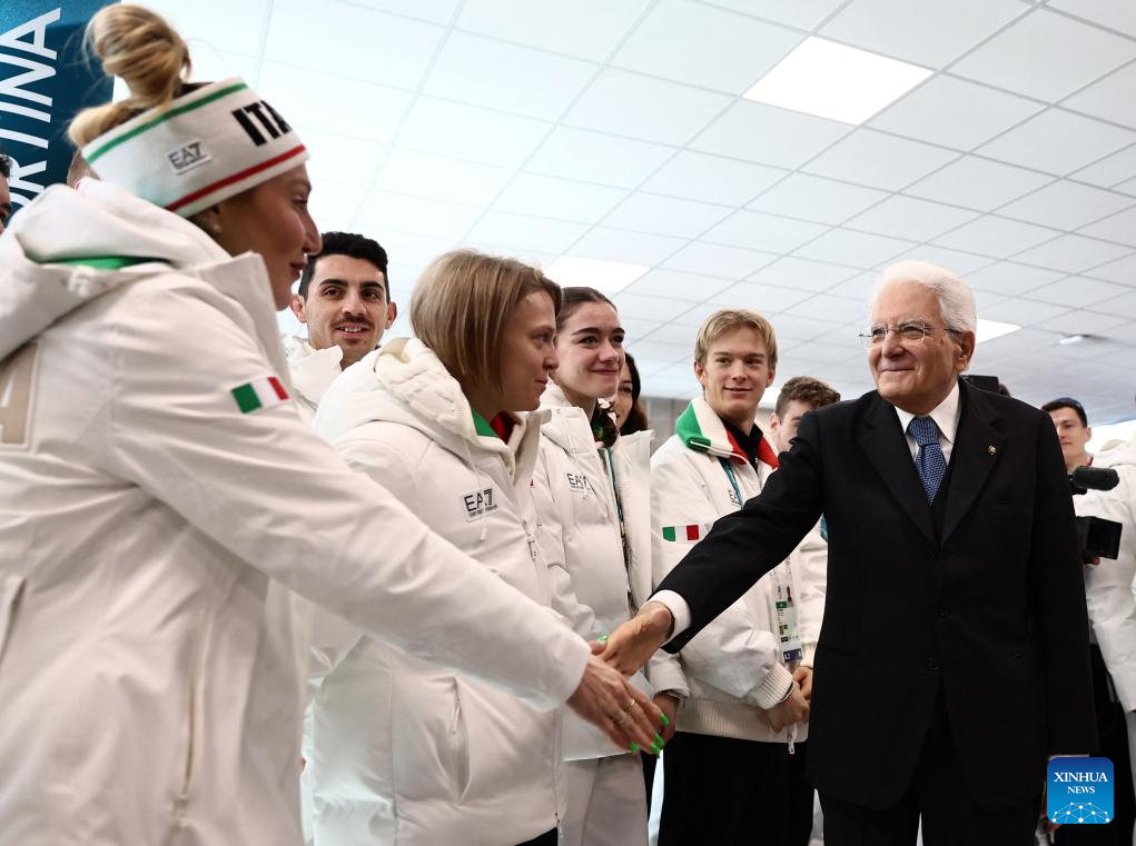 Italian President Sergio Mattarella visits the Olympic Village ahead of the 2026 Milan-Cortina Winter Olympics in Milan, Italy, Feb. 5, 2026. (Yara Nardi/Pool via Xinhua)