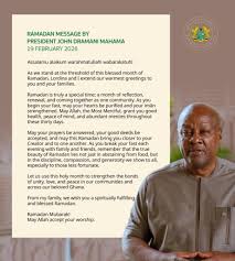 President John Dramani Mahama has extended warm greetings to all Muslims across the country as the month of Ramadan begins, according to a statement on Friday.