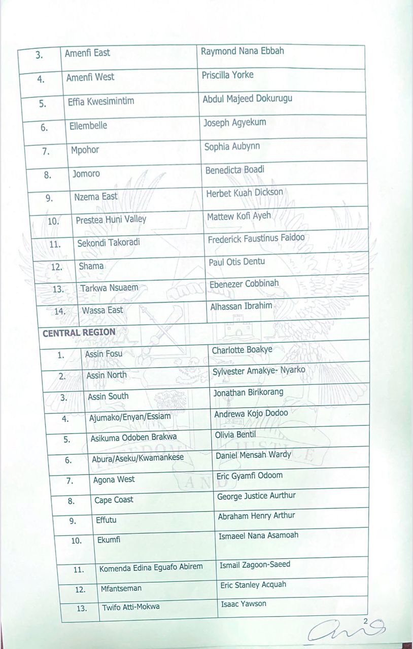 “I write to inform you that in accordance with Article 243 of the 1992 and the Local Governance Act, 2016 (Act 936) as amended by the Local Governance (Amendment) Act, 2017, the President of the Republic has nominated the following individuals as District Chief Executives, subject to approval by the respective District Assemblies,” said the statement.