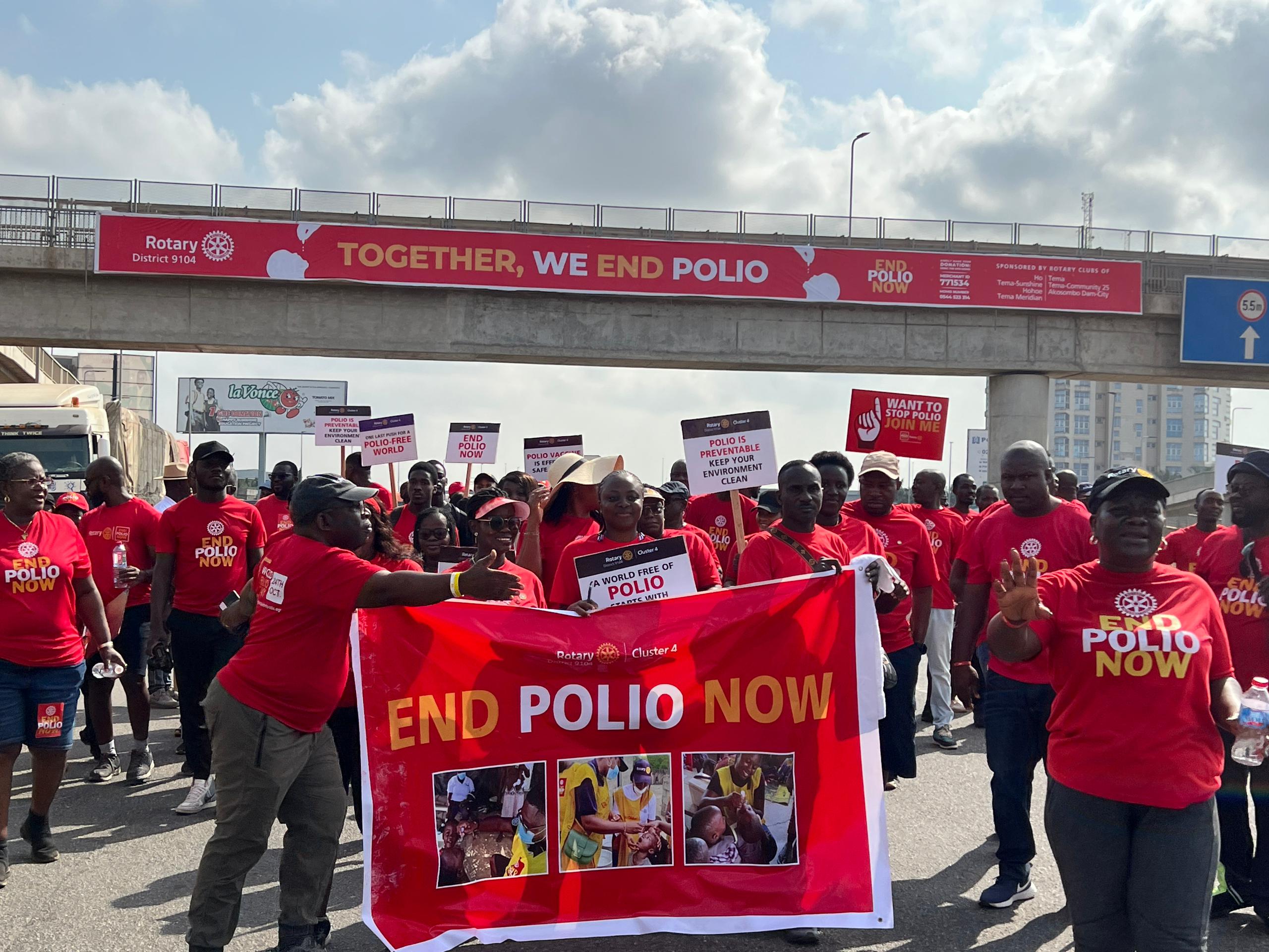 The event climaxed with the unveiling of a massive “End Polio Now” banner, at the footbridge after the old tollbooth across the Tema–Accra Motorway, symbolizing Rotary’s renewed resolve to finish the fight against the crippling disease.