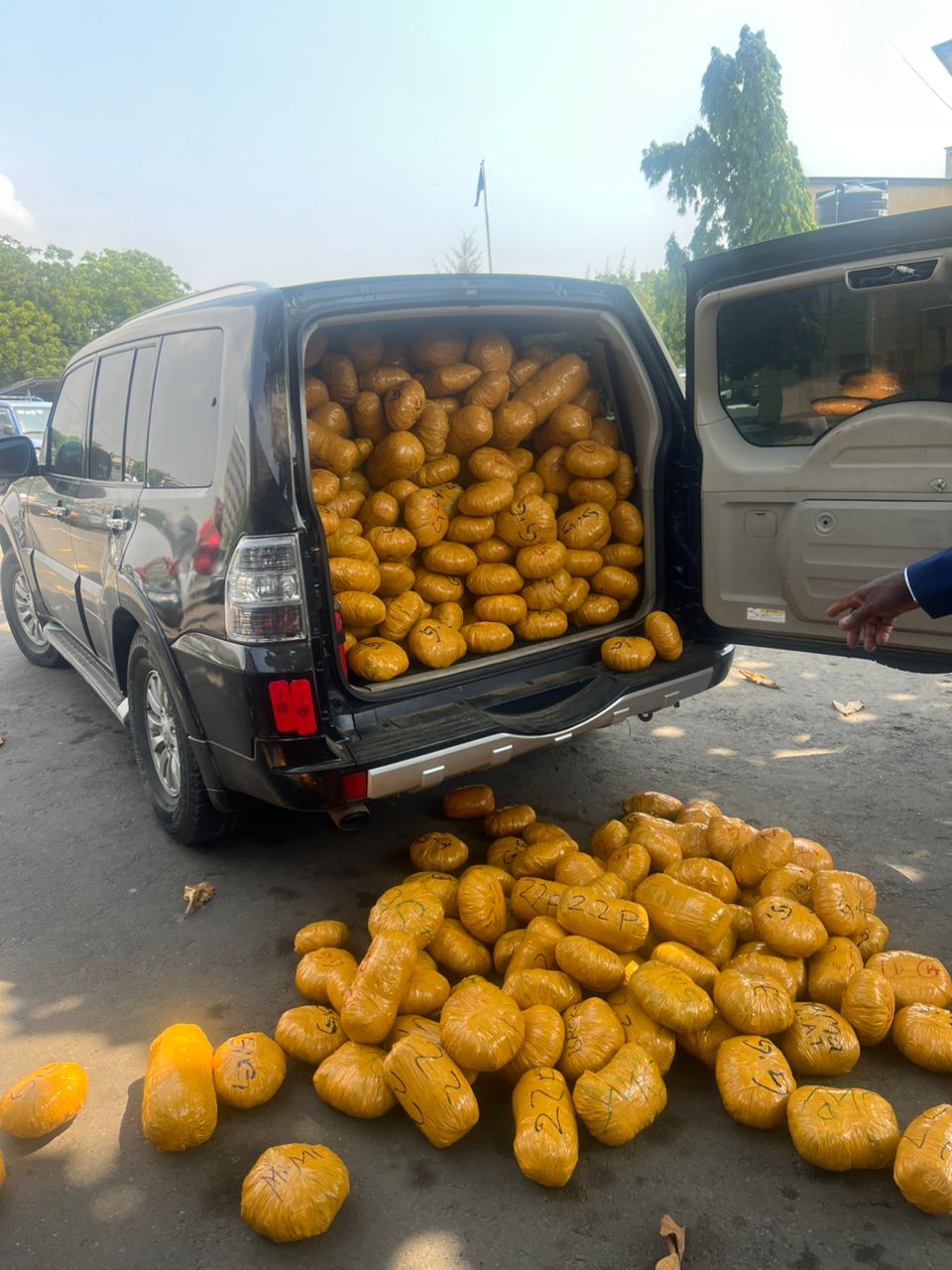 According to the police, a surveillance was mounted on January 11, leading to the interception of two vehicles – a white Toyota Highlander (GS 2013-13) and a black Mitsubishi Pajero (GC400-22), and a search led to the discovery of several compressed, yellow-wrapped parcels suspected to be narcotic drugs.