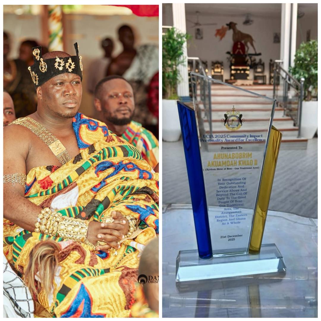 The United Clergy International Association (UCIA) Worldwide, in partnership with Bishop Anoff Ministries, has awarded Nana Ahunabobirim Akuamoa Kwao II, the Kyidomhene of the Boso-Gua Traditional Area, the 2025 Community Impact Personality Award for Excellence.